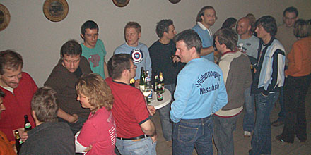 | Eine Bildnachlese von der Gründerzeit bis heute ließen alte Erinnerungen wieder wach werden. So gleitete man langsam zum "offiziellen Festakt" wo bei Kalt-/Warmem Buffet und freien Getränken das 25-jährige Bestehen der Spielvereinigung Weisenbach unter dem Motto Spielvereinigung wie vor 25 Jahren bis zum frühen Morgen gefeiert wurde. | ||