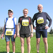 Uhr auf dem Plan. Ein erster Härtetest war dann der Halb-Marathon am 25. Geburtstag der Spvgg am 03.04.2005 in Freistett. Auf Badens schönsten Waldwegen war es für Martin Irth und Rainer Hürst wichtig das richtige "Lauf-Feeling" zu bekommen. Das Ziel der Beiden war es konstant zu laufen mit dem Ergebnis von 1 Stunde und 40 Minuten das Stadion in Freistett zu erreichen, dies ist den Beiden hervorragend gelungen. Martin Irth kam als 40. mit einer Zeit von 1:37:46 (Platz 6 in der M40 Wertung) und Rainer Hürst in 1:37:47 als 41. (7. Platz M40), von 129 in die Wertung gekommenen Teilnehmern, ins Ziel. |