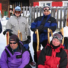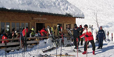 Am Freitagmorgen trafen sich pünktlich 16 Schifans zur Fahrt in den Bregenzer Wald. Nach einer kurzweiligen Fahrt, mit viel Bier und Brezeln erreichten wir bei herrlichem Sonnenschein das schneebedeckte Schoppernau, wo wir dann gleich unser Gepäck bei der Materialseilbahn deponierten. Nach einer kurzen Weiterfahrt erreichten wir unser erstes Ziel den Hochtannbergpass mit dem Schigebiet " Warth-Schröcken". |