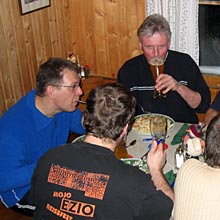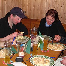 | Der Abend entschädigte die müden Knochen mit leckeren Käsespätzle, Jägermeister und " Marillesnaps" für den anstrengenden Tag. | ||