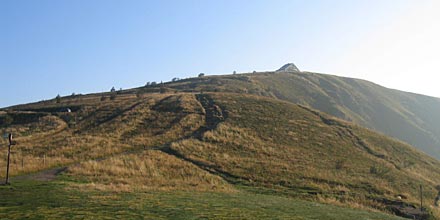 Bereits früh am Morgen verließen wir die Auberge nach dem Frühstück um über der Baumgrenze bei guter Sicht entlang des Kammrückens der Südvogesen zu gehen. |