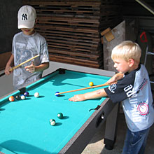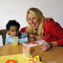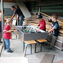| So sah man nicht nur die Kinder mit den Spielgeräten, sondern auch die Erwachsenen mischten sich dazwischen. Auch der Maltisch war ständig von den Kindern belagert. |