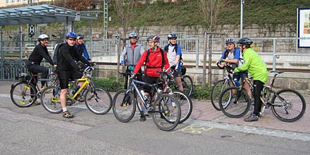 | Zum Start bei der Stadtbahnhaltestelle Weisenbach trafen sich 10 MTB-Freunde, die die gut 20 km lange Strecke und 450 HM über Reichental, Wegkreuz Eben, Lägerhütte, Altes Rod, Langenbrand, Au, Füllenbachtal, Grillplatz und zurück nach Weisenbach in Angriff nahmen. |