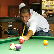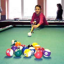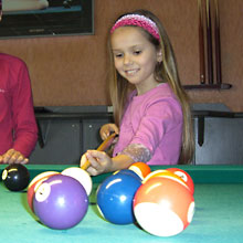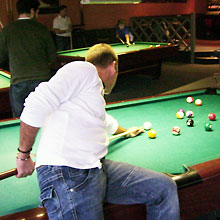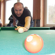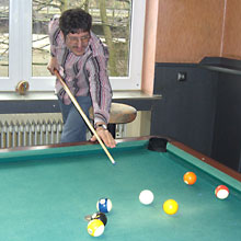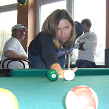 | Das Spiel um Platz 3 wog lange hin und her, bis Margit die Schwarze gekonnt über Bande ins falsche Loch stieß. So holte sich Uwe den 3. Platz und steigerte sich enorm gegenüber dem letzten Jahr, wo er Platz 9 belegte. Platz 5 belegten zusammen Volker Hürst, Sabine Wunsch und Kosmas Wunsch. | |