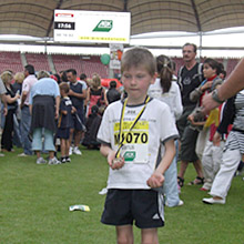 | Am Samstagabend ging’s mit dem AOK Minimarathon los. Dort erreichte Marius Hürst in der Schülerklasse 1998-2000 mit 5:41 min über 1000 m einen sehr guten 315. Platz von 1015 Startern. Seine Schwester Sita benötigte beim AOK Jolinchen-Lauf (Jahrgang 2000 und jünger) 7:50min für die 1000 m, dies bedeutete Platz 84 bei fast 200 Startern. |