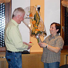 | Für 15- bzw.10- jährige Tätigkeit in der Vorstandschaft bedankte sich der Vorsitzende anschließend bei Margit Merkel und Kornelia Bandel und überreichte je ein Präsent. |