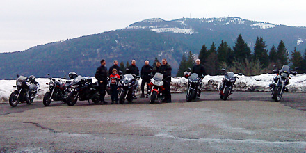 | Am Samstag trafen sich 10 Motorradfahrer zur ersten Ausfahrt des erst vor kurzem in's Leben gerufenen "Biker-Stammtisches" der SpgVgg. Um 14:00 Uhr startete die Ausfahrt vom Rathausplatz unter der Führung von Rainer. |