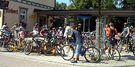 | Unsere Fahrradtour war rundherum ein großer Erfolg. Über 40 große und kleine Radfahrer hatten mit Ihren Rädern am späten Vormittag die Stadtbahn nach Baiersbronn bestiegen. |
