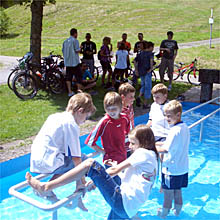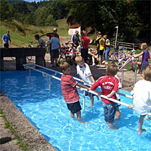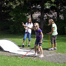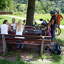 | In Schönmünzach konnten sich die Kinder beim Minigolf verweilen und die Erwachsenen sich unter den schattigen Bäumen von der anstrengenden Tour ausruhen. |