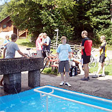| Die erste kleine Pause war wie immer an der Kneippanlage. |