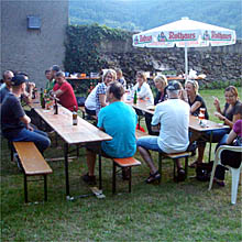 | Als die letzten dann am Abend in Weisenbach einrollten, startete auch schon die Grillparty im Schützenhaus, wo sich dann alle bei Steak, Wurst und Getränken vom anstrengenden Ausflug erholen konnten. |
