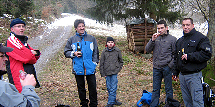 | Nach gut 2 Stunden erreichten sie wenig später dann die Rote Lache, wo man aber leider noch etwas warten musste, bis die warmen Getränke angeliefert wurde. Den sehnsüchtig erwarteten Glühwein und auch heiße Schokolade brachten nämlich die Frauen mit dem Nachwuchs zum Treffpunkt mit. Gott sei Dank hatten die Wanderer noch etwas in ihren Rucksäcken, um die Wartezeit zu überbrücken. |