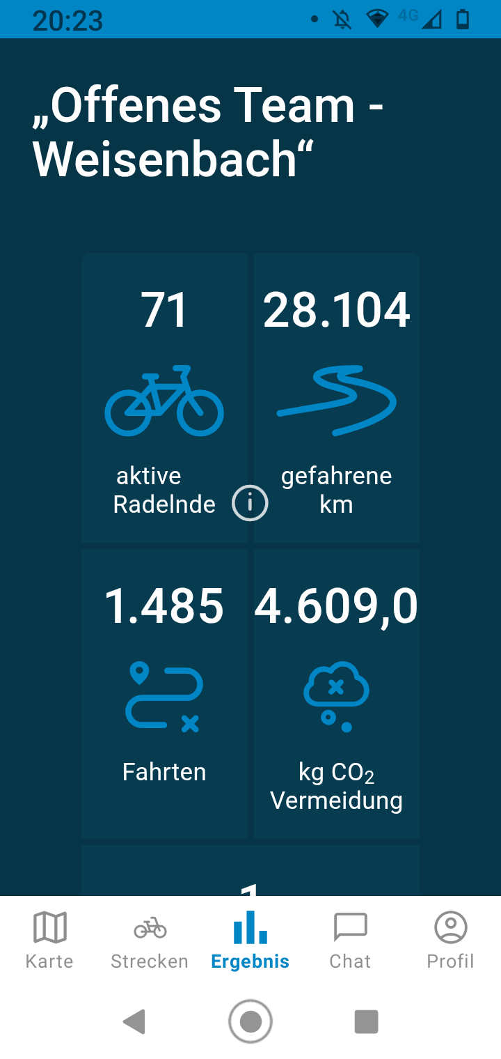 Das „offene Team Weisenbach“ fuhr in Summe 28.104 Kilometer was einer Steigerung von fast 5000 Kilometern der Vorjahresteams (23.391 KM) aus Weisenbach entspricht. In der Wertung der Kommunen errang Weisenbach den 1. Platz in der Wertung der gefahrenden Kilometer je Einwohner.