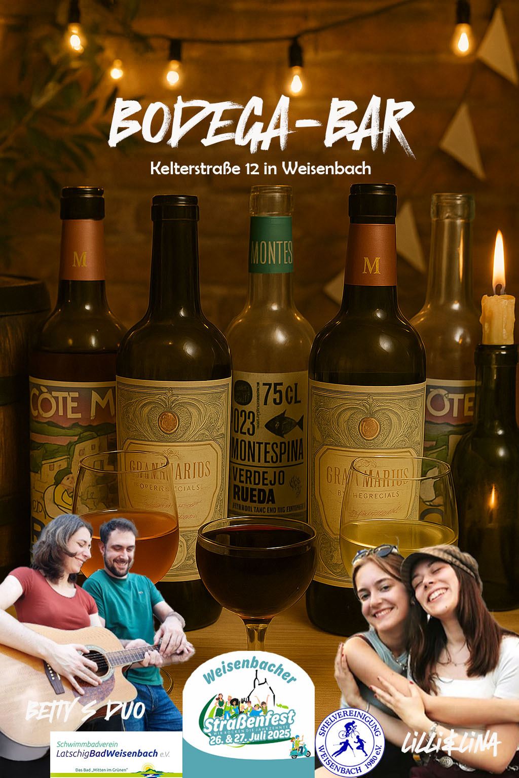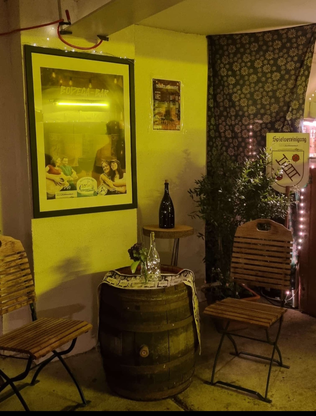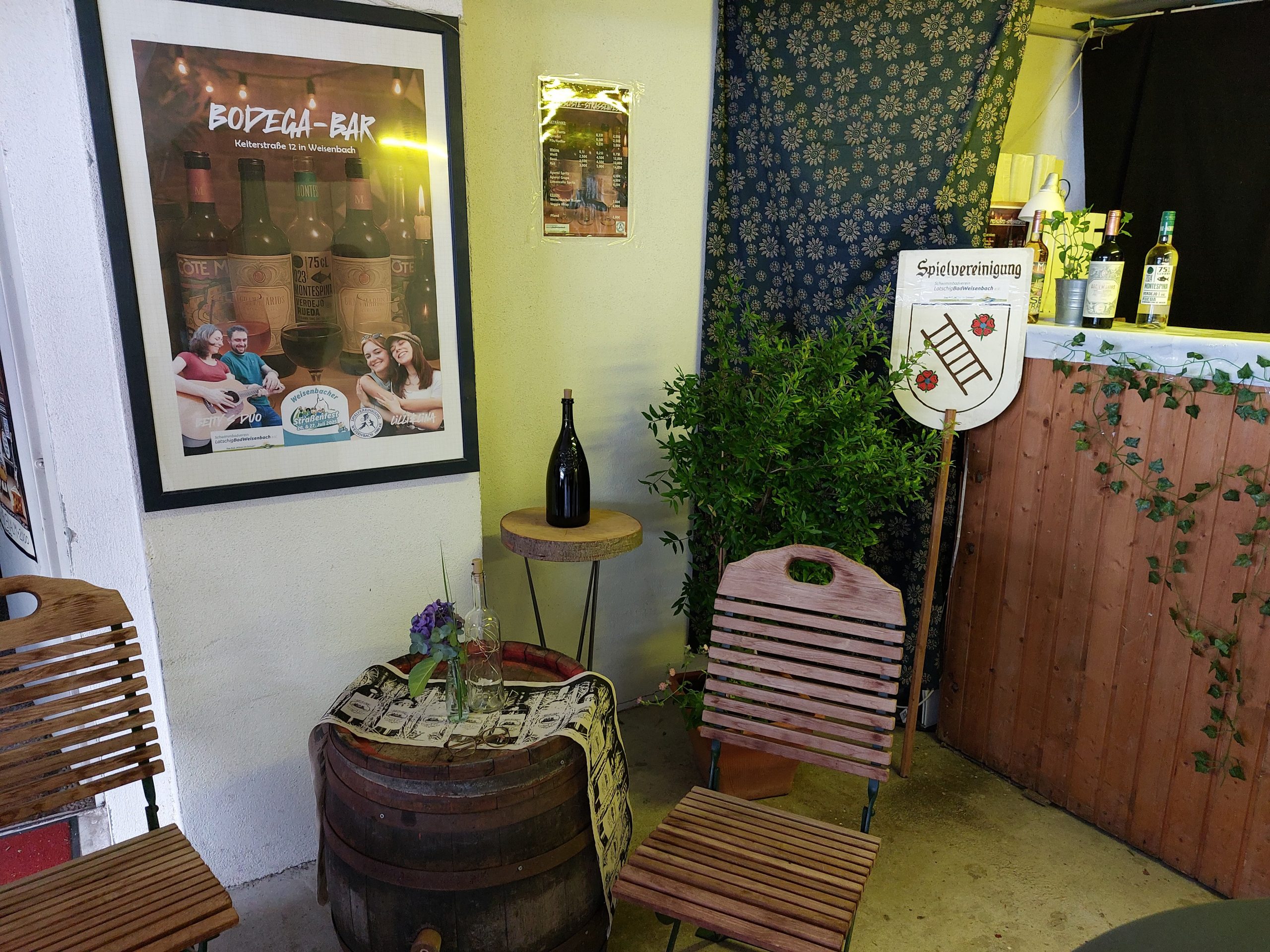 Wir hatten uns bei Rainer u. Ela eingemietet und betrieben dort eine Bodega-Bar. Es wurden verschiedene Weine, Aperol-Spritz, und weitere Getränke an unsere Gäste ausgeschenkt. Gut angenommen wurden auch unsere Weisenbacher Frikadellen Burger und die vegetarischen Wraps.
