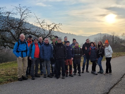 Am Treffpunkt um 13:00 Uhr an der katholische Kirche in Weisenbach trafen sich 15 Mitglieder der Spielvereinigung . Bei frostigem aber schneearmen Winterwetter wanderten wir über Hilpertsau (Friedhof) , Scheuerner Weg nach Lautenbach und weiter zur Illertkapelle. Hier erwartete uns bereits Margit mit dem von Roland gestifteten Glühwein mit Vanillegeschmack.